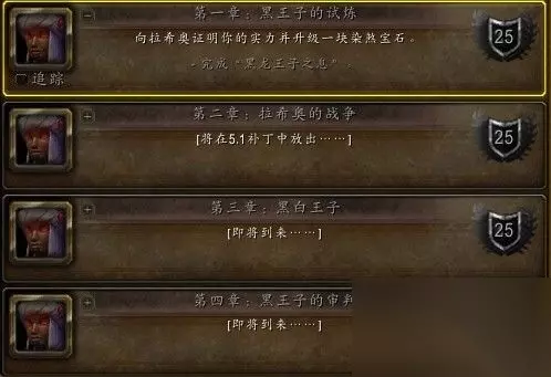人之谜版本的橙武任务线是一条由死亡之翼家公子拉希昂给予的,5.0、5.1、5.2和5.3版本的超长任务线。而且5.0版本的任务持续到获取黑龙王子之息为止。