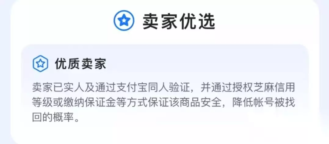3、优质卖家认证 好的平台自然吸引到不少优质的卖家入驻,这些卖家手中的账号质量上乘,卖家的信誉度也很高,跟他们进行过交易的买家都给了很高的评价。平台也大家挑选出一批优质卖家进行认证,这样大家就能跟好的卖家来买账号,体验愉快的交易了。