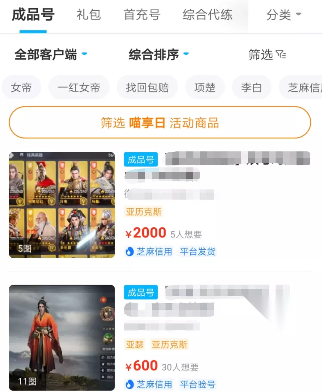 2、平台活动多补贴力度大 交易猫上的优惠活动是非常多的,不定期就会举办一些活动,让小伙伴可以领到满减优惠券,或者是准备一些特价账号提供给大家购买。最近正在举办的喵享日就是不错的活动,大家趁着活动期间下单购买账号,可以享受高额优惠券补贴,能省不少钱呢。