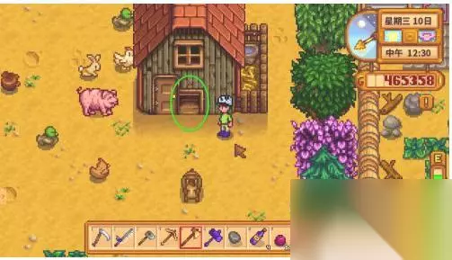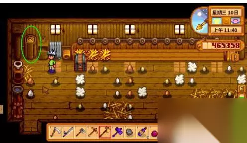 下面为您介绍星露谷养好鸡,出优质大鸡蛋的方法: 1.溜鸡。在鸡舍外有个小门,点一下就打开了,这个出口是让鸡散步用的,鸡出来散步可以自己找食物,并且心情愉快。傍晚五点鸡自动回归鸡舍,此时要把鸡舍门关起来,否则鸡心情差还可能被别的动物吃掉。