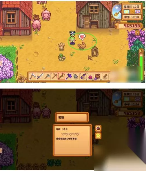 新买回家的鸡,准确说是小鸡崽不能生蛋。这时候不要急养几天就长大成年了,成年后可以生蛋,鸡是星露谷勤奋的家禽,只要食物充足心情不坏就能每天下蛋。