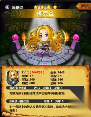 女警射程够远,而且技能准备为0,普通技能可以让对手沉默2回合,在后期的精英副本中作用还是非常大的。队长技更是全屏找到一个最弱的敌人进行攻击,实在是一个收尾的好帮手,捏柿子当然要找软的来下手。 4、 娜克丝(外号:光辉)