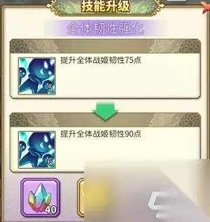 5、武田信玄选择两项伤害减免。建议前期最多升至四级,因五级需耗费50个黄球且收益较低。 6、第二阶段为通用属性,全战姬均可受益于属性升级,提升整体实力。