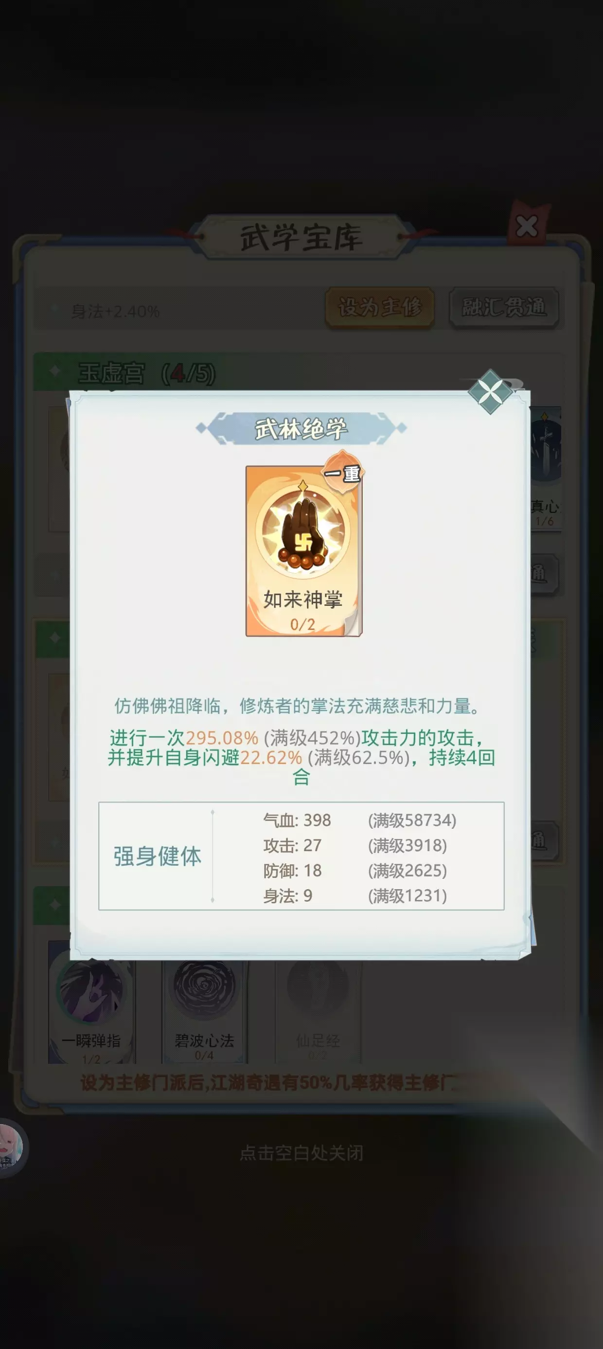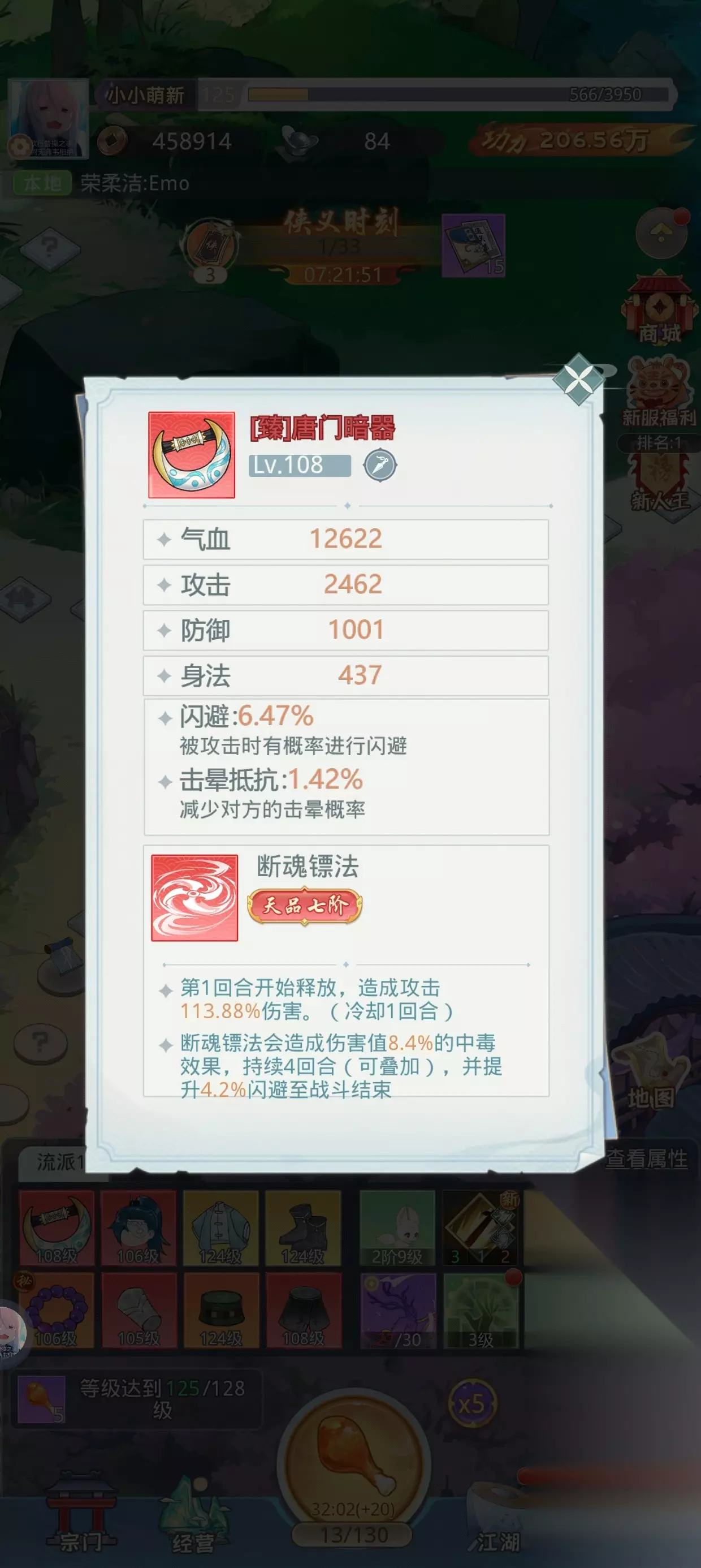 今天给大家带来魔境迷宫大冒险闪避流玩法介绍,不用多说,闪避流肯定在任何类型的小游戏里面都贼恶心,首先,闪避流的装备都在唐门位置,前期不用管,有啥带啥,到了一定等级后,如果遇见驿站,选择去往唐门,此时,开10倍鸡腿,因为驿站周围提升极大几率好装备爆率。 魔境迷宫大冒险闪避流玩法介绍 1、闪避流的装备都在唐门位置,前期不用管,有啥带啥,到了一定等级后,如果遇见驿站,选择去往唐门,此时,开10倍鸡腿,因为驿站周围提升极大几率好装备爆率。 2、最关键的一点,遇见玲珑棋局的时候,一点是开着10倍鸡腿的,这样运气好,闪避一次性提升10%。 3、闪避叠到100多,关卡基本都能越几十级过了。 4、道侣和功法推荐如图,大家可以试试闪避流,贼恶心