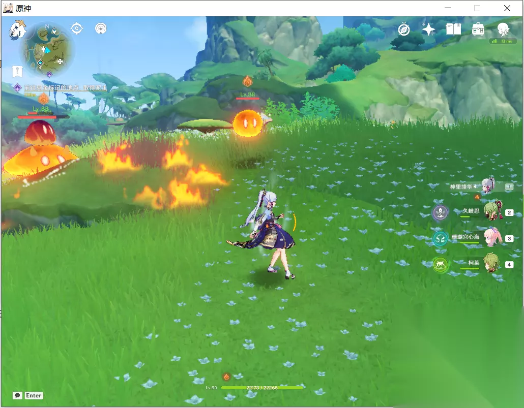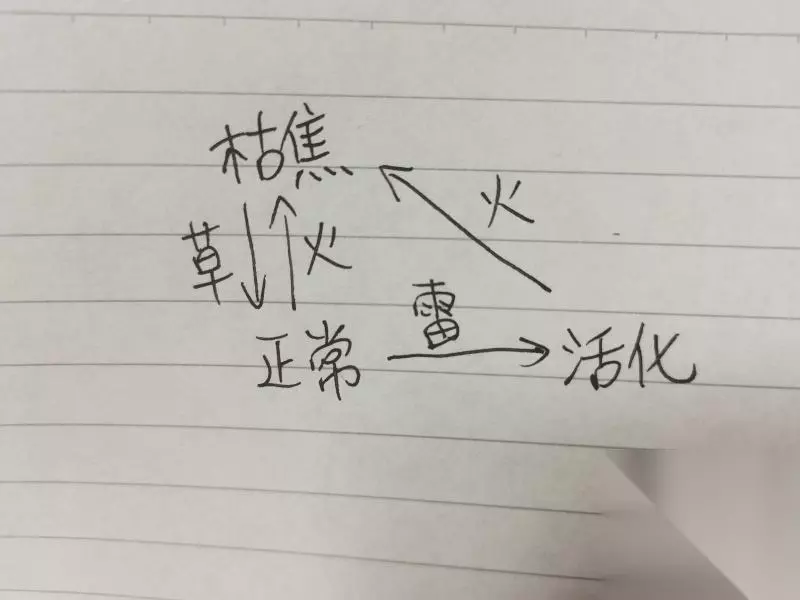 第二个也是一样,火史莱姆旁边围着,用雷元素活化,互动。