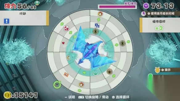 【BOSS战面板】 箭头:以绿色箭头图案显示,踩住后会沿着箭头的方向前进,直到遇到下个箭头才会调整方向。 行动:以拳头图案显示,踩到后可以进入攻击阶段使用武器或者道具。 魔法阵:以神祇之手或地神祇等图案显示,踩住后可以使用这些特殊能力,比如当BOSS处于虚弱状态时,可以踩到魔法阵面板上利用神祇之手造成高额伤害。 魔法启动:以标有启动字样的图案显示,通过的话就能使用魔法阵。 提示信封:以信封图案显示,踩到后可以查看BOSS战的一些提示,初见BOSS时可以先踩信封来了解机制。