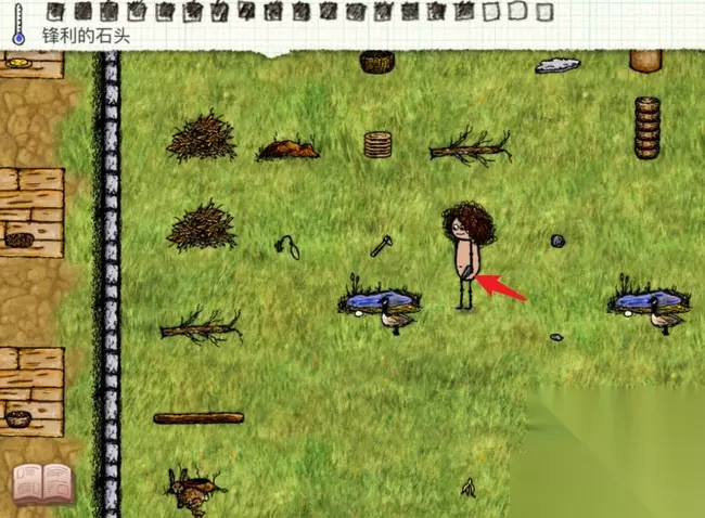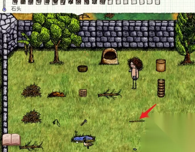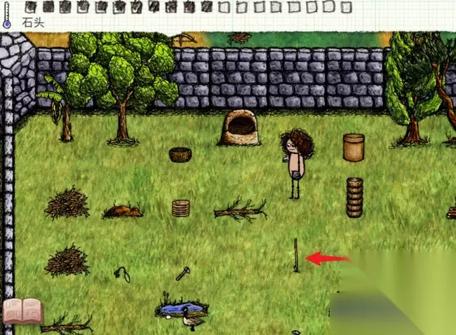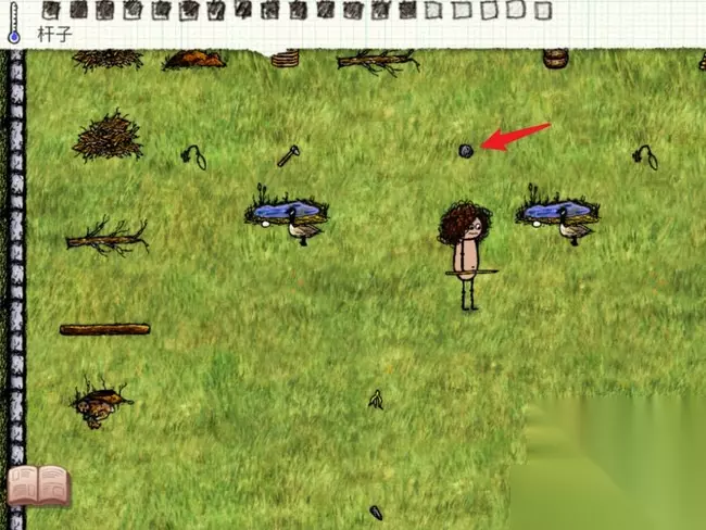 5、将木签扔到指定位置,拿着圆石划过木签。