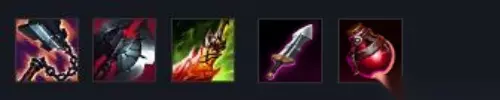 5、出装推荐:【渴血战斧+黑色切割者+死亡之舞+铁板靴+多兰之刃+生命药水】