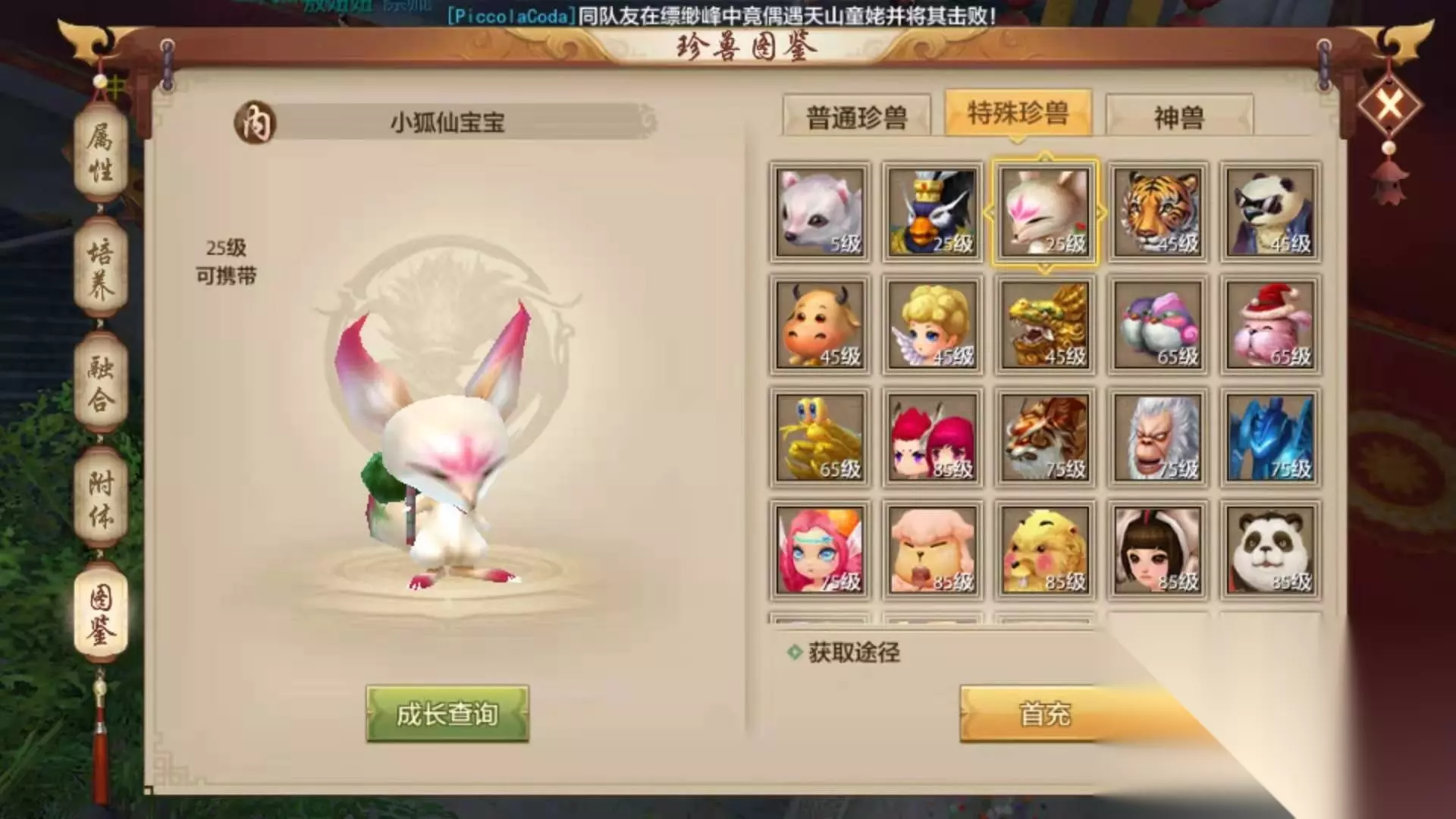 如此高颜值又呆萌可爱的小狐仙宝宝又怎么会不让玩家对它情深一处呢。新天龙八部手游中的小狐仙宝宝可以通过首冲赠礼获得。我们可以通过个人繁殖以及和别的玩家组队繁殖来获取二代小狐仙宝宝。