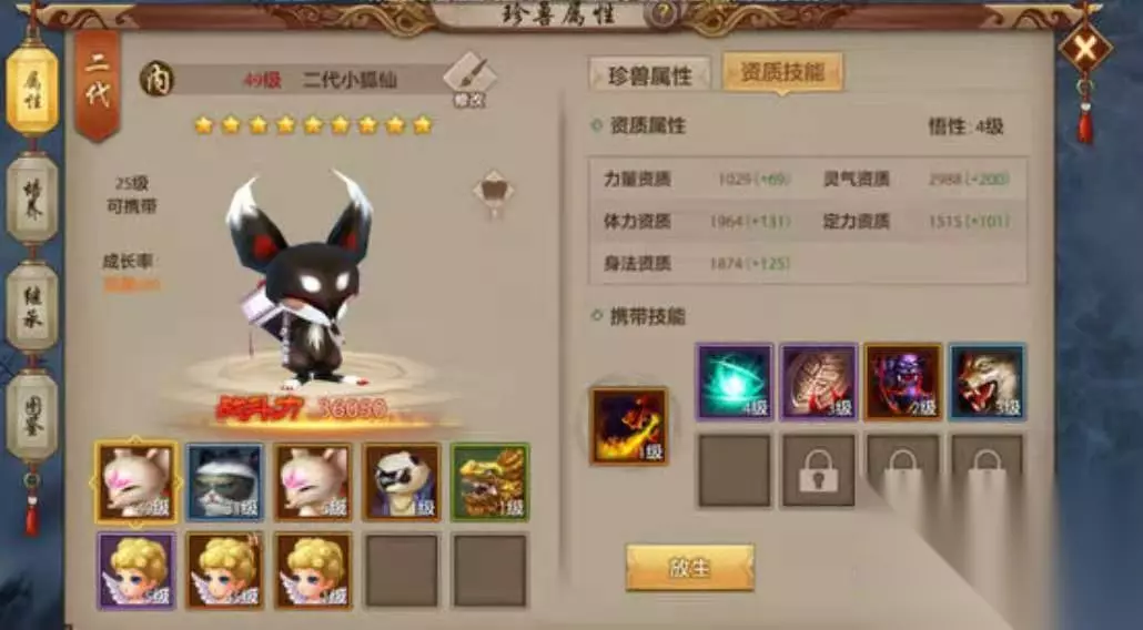 二代小狐仙宝宝不止颜值更高而且资质也会得到极大的加强。小狐仙宝宝作为内攻宝宝手动技能选择群攻技能能有效的提高打怪和刷副本的效率。