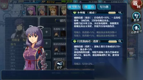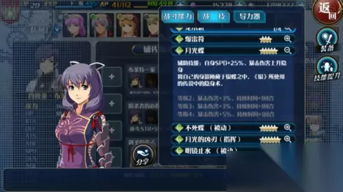 核心被动:自身免疫即死,5回合5次魔法无效,增伤20% 核心指挥:我方全员STR+5%,暴击+8% 由于银必定前排出场,所以这个指挥=被动 核心战技:月光蝶、爆雷符 隐身攻击=必定命中,必定暴击 满级时暴伤=150%+11%=161% 2次月光蝶即可叠满50%SPD的上限BUFF 月光蝶AT=1500/(75*1.5)=13 主力输出战技2500硬直228%倍率的爆雷符 月光蝶叠满速后,爆雷符AT=2500/(75*1.5)=22