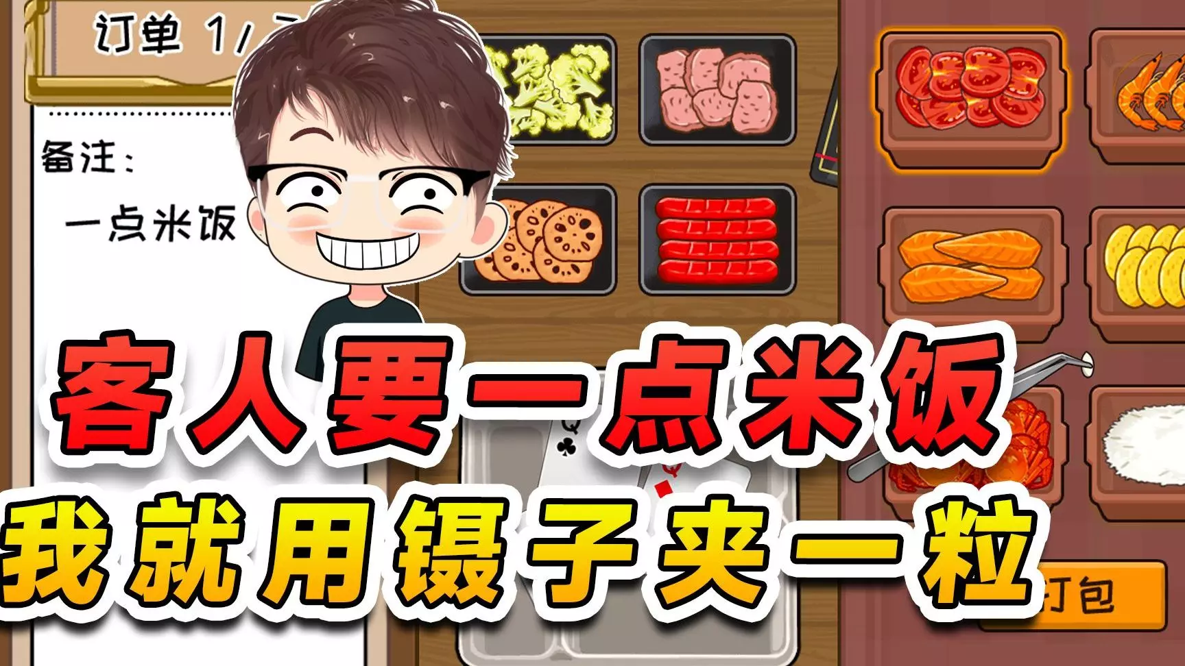 帮客人制作外卖?备注要一点米饭,那我就用镊子夹一粒米吧