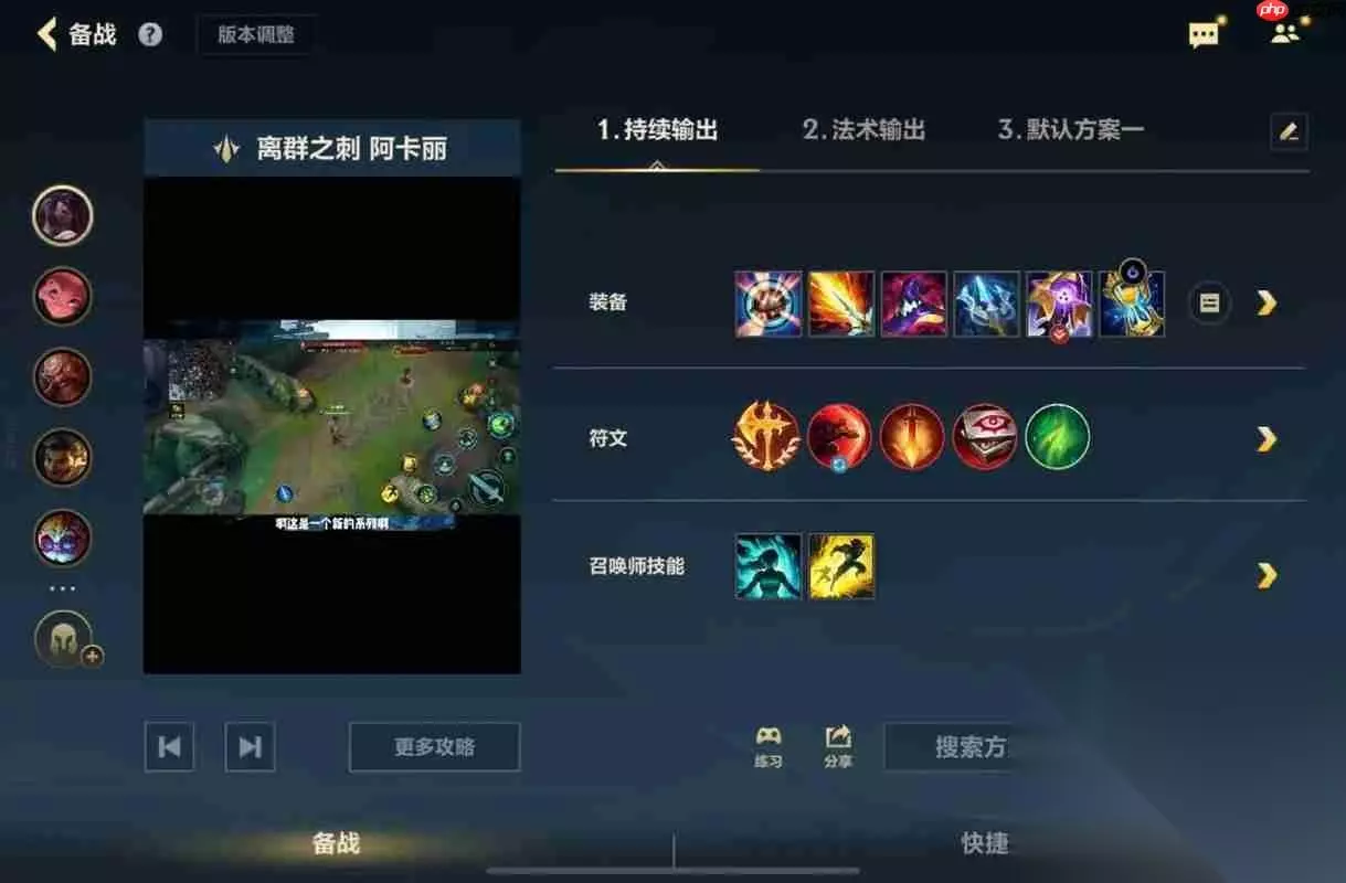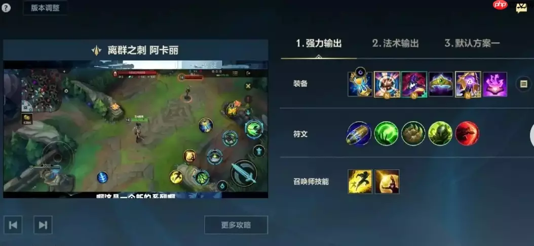 符文搭配与出装思路:打造极致爆发体系 符文方面,电刑无疑是首选。配合技能衔接触发额外伤害,完美契合阿卡丽短时间打出高额爆发的需求。 其余符文推荐: 猛然冲击:配合三技能和大招的位移,提升穿透效果; 眼球收集器:逐步叠加伤害; 无情猎手:增强非战斗状态下的移速,提升游走效率。 六神装成型路径如下: 推推棒(海克斯科技火箭腰带):首件必出!提供技能急速、法强、生命值以及关键主动位移,极大强化阿卡丽的进场与拉扯能力。 法师之靴 + 法穿:提升移动速度与法术穿透,确保前期技能伤害更具威胁。 影焰:中期质变装备,尤其在敌人堆叠生命值时,其基于最大生命值的百分比伤害让阿卡丽切坦也如砍瓜切菜。 金身(中娅沙漏):团战保命神器。进场后及时开启,规避控制与爆发,等待技能冷却完成二次输出。 法穿杖(虚空之杖):面对魔抗成型阵容必备,确保每一记技能都能直击要害。 灭世者的死亡之帽:最终一击!大幅提升总法强,使阿卡丽后期两套技能轻松融化满血后排,即便复活甲也难逃二次击杀。