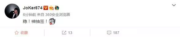 Joker直言这是神抽签,八强战稳了。
