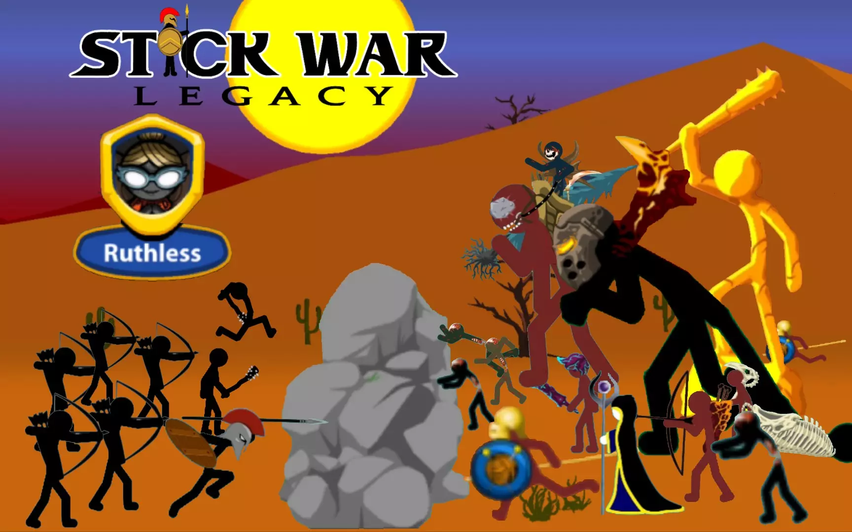这是《火柴人战争三》的对战内容,展示了满人口的火柴人忍者与火柴人剑士展开对战的游戏画面,呈现了游戏里的兵种对战场景。