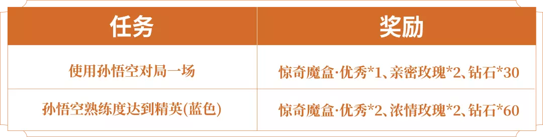⧫活动奖励:活动期间完成任务可领取对应奖励,还可免费试用孙悟空英雄、孙悟空-西部大镖客皮肤!