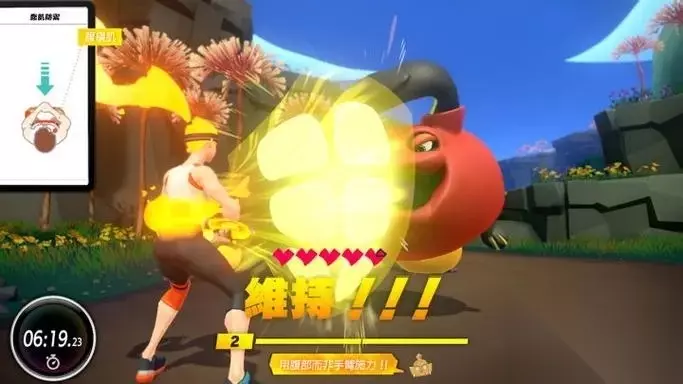 这是一款健身游戏,玩家可将NS上的Joy-Con装入游戏自带的“Ring-Con”及腿部固定带中, 以识别自己的动作,一边健身一边在游戏中冒险。在游戏中可实现60种的健身,并且可将记录上传,与世界范围内的玩家竞争!