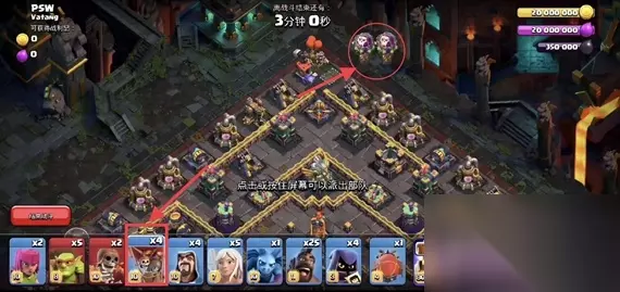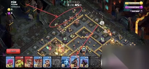 部落冲突称霸暗夜挑战怎么打?称霸暗夜挑战是部落冲突最近新上线的一个活动挑战,很多玩家不知道如何完成三星的挑战,也不知道具体的通关策略,其实这个挑战还是有挑战性的,完成它也不是那么简单,下面233乐园小编就大家分享部落冲突称霸暗夜挑战玩法攻略。 部落冲突称霸暗夜挑战玩法攻略 【部落冲突】称霸暗夜挑战是最近新上线的一个活动挑战,其通关确实有一定的难度,今天就为大家带来了详细的通关教程:1.先在图中所标位置下2个气球抗一下;