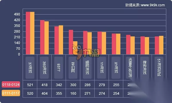 点评:本周一线页游运营平台开服榜单前三与上周保持一致:37游戏、360游戏、9377;新增上榜平台哥们网,开服总数增长87.5%。曾凭借自研作品《天书世界》一炮而红的哥们网近期推出独代新游《九阴绝学》,据9K9K网页游戏开服数据统计,最新入驻9377、2133、快玩游戏3家一线平台,扩张姿态初现。本周一线平台共引入新游14款,其中《九阴绝学》、《剑雨江湖》、《女神联盟2》、《天局》均有入驻3家以上一线平台,发展趋势良好PPS游戏引入新游《天天有喜》,本周尚在删档测试阶段。 本周一线平台共开服5428组,其中榜单开服共3080组,占一线平台开服总数的56.7%,该占比较上周增加0.6%;排名前三平台开服1281组,占榜单开服41.6%,该占比较上周减少1.8%。哥们网《九阴绝学》在内测开启当天连开17服,之后均保持在20服/天以上的较高频率,不到一周便开服逾百,由此对上榜平台整体分布占比影响较大。 迅雷牛X页游本周开服总数较上周增长8.6%,其对于市面新作表现出了极大的热情。本周迅雷牛X页游新晋《九阴绝学》为主打游戏,开服频率猛增至4服/天,其开服占比下周将继续保持较大幅度增长。此外,新游《女神联盟2》、《蜀山战纪》的开服力度本周均稳定在1服/天,较为稳定。 二、运营平台开服分析