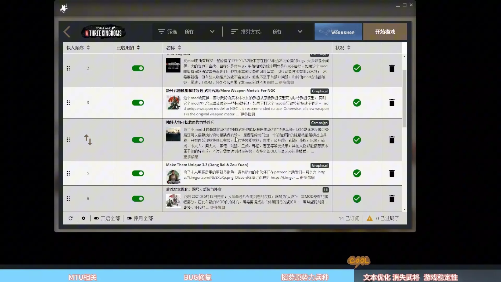 最近重温了下三国全面战争 自己整合了一些可玩性很强的MOD合集 和一些比较实用的功能性MOD 在这里做期视频分享给大家 希望大家喜欢