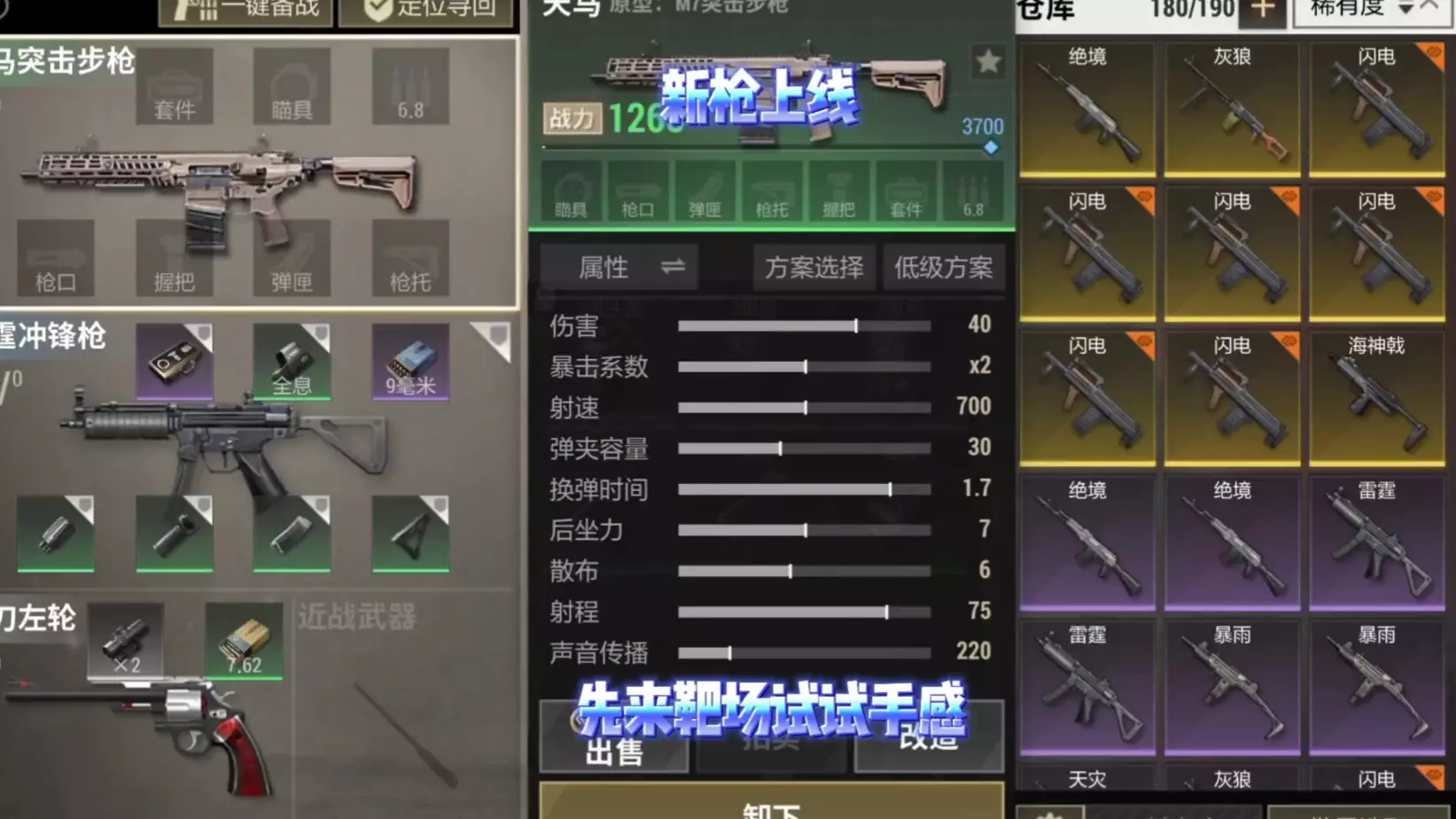 这是手游《超凡先锋》的游戏内容展示,呈现了玩家的装备栏情况,有天马突击步枪、龙卷自动步枪等多款枪械,还有不同等级的防具、弹药、道具等,同时展示了玩家在游戏场景内的战斗行动画面。