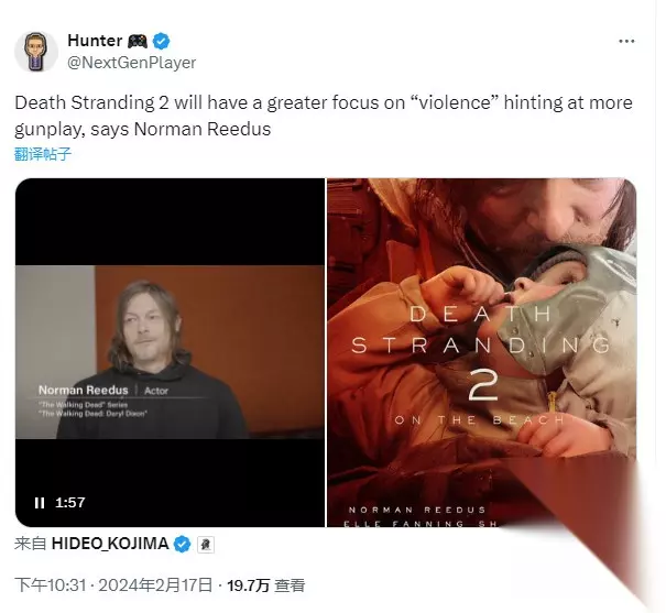 在《死亡搁浅》中饰演男主的弩哥(Norman Reedus)谈到了《死亡搁浅2》在最近的预告内容,他表示《死亡搁浅2》将具备更加暴力的内容,更注重动作,可能是在…
