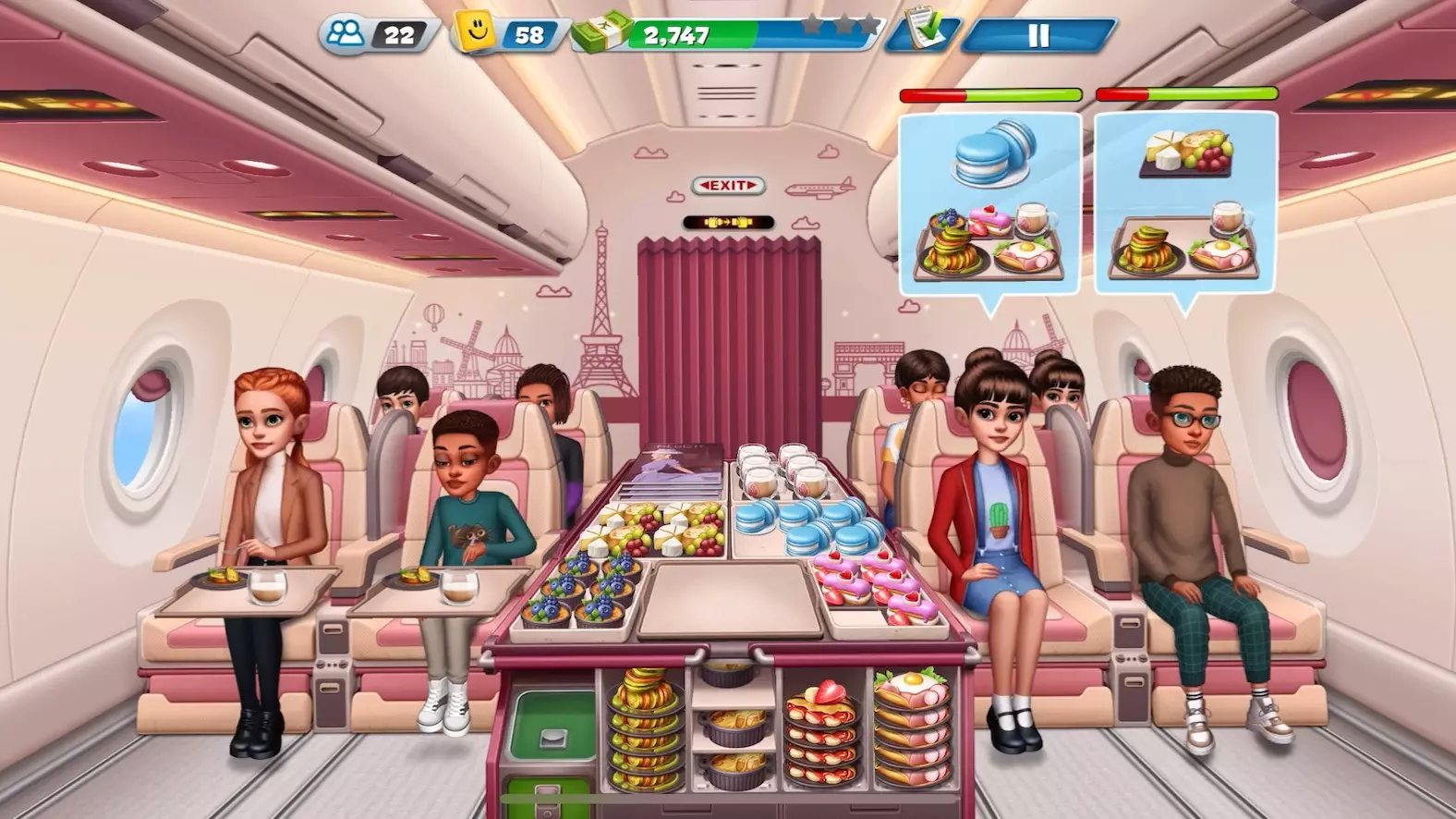 这是《飞机大厨》巴黎关卡的大厨对决游戏素材,玩家在对决临近结束时还在备餐,最终成功赢得了这场对决。