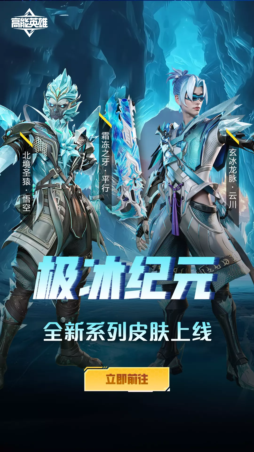 重点道具:悟空传说级皮肤【北境圣猿】、云川传说级皮肤【玄冰龙脉】、平行传说级可升级皮肤【霜冻之牙】、云川处决技【移山填海】、传说级滑翔器【冰犬雪橇】。