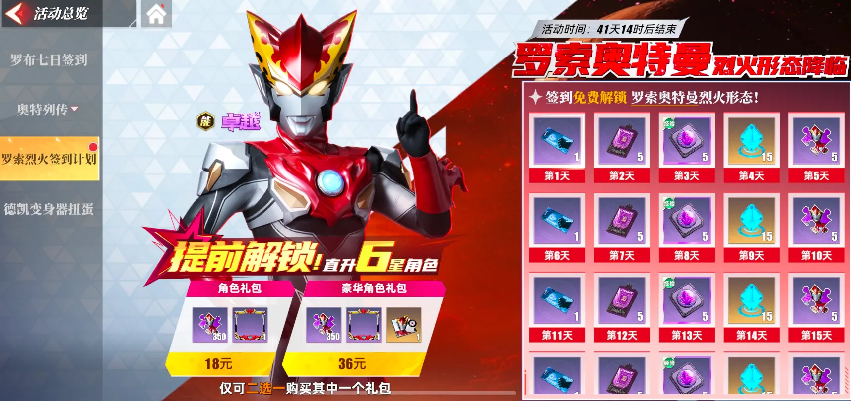 全新卓越角色——罗索奥特曼烈火形态登场!在活动时间内,参与罗索烈火专属签到活动就可以免费获得罗索奥特曼烈火形态!