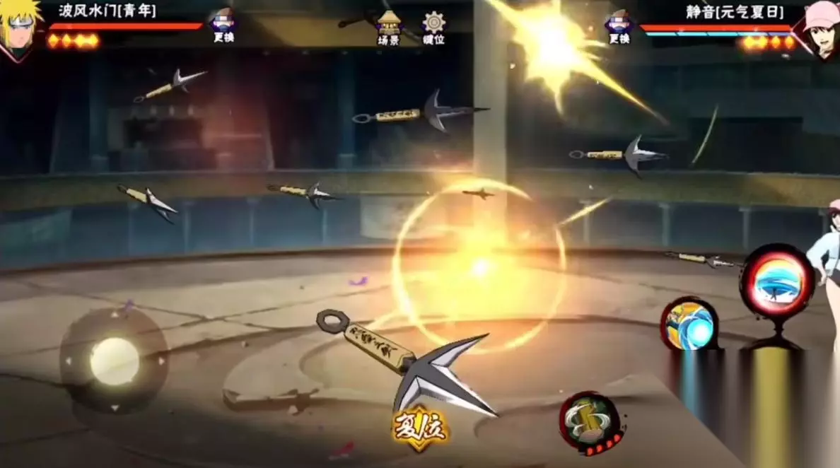 由于场上最多是五枚苦无,而青年水门的连招只能选择瞬移到普攻的苦无还是技能的苦无,因此这里的择只有二选一,双方都具有操作空间。