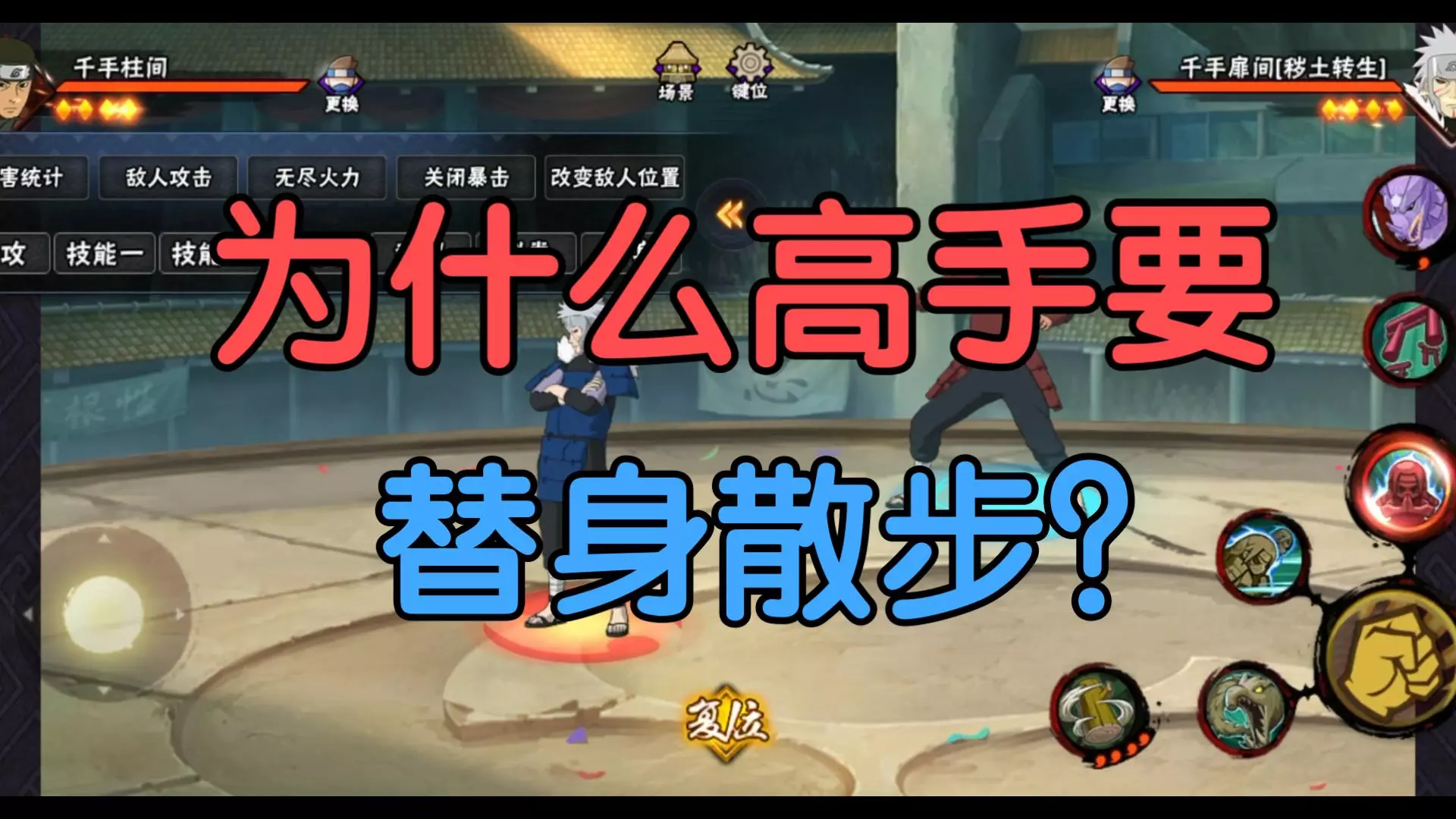 这是一则火影忍者手游相关内容,博主向萌新讲解游戏决斗场技巧,着重强调替身和替身差的重要性,指出没拉开替身差很容易输掉对局。