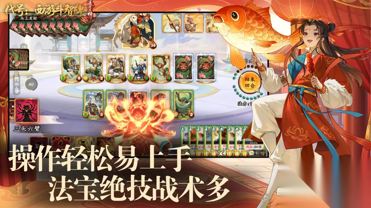 一个西游题材国风策略卡牌手游,游戏以西游记为蓝本搭建了三界世界观,围绕金蝉转世与真经展开剧情,玩家可以招募仙圣冥妖四大阵营的神将进行回合制战斗。游戏支持自由拆装组合神将技能,还支持阵营无损切换,没有固定的配队套路。游戏采用唐三彩风格的画面设计,角色立绘和场景带有釉色流动的质感,技能的动态特效做的也不很不错。 扫码下载该游戏 高速下载 普通下载 优先233乐园APP下载 2、《代号:西游斗智牌》