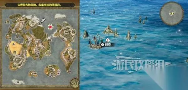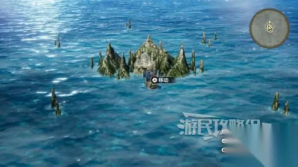 传送到【矮人祠堂】或附近其他传送点,乘船前往海上的礁石处(参考下图星标位置),到达礁石处靠近点击调查,将干涸之壶浮在海面上。