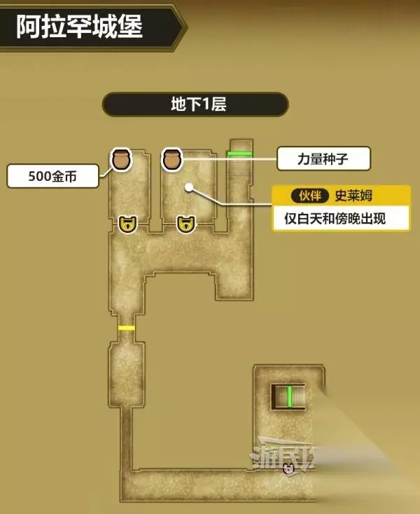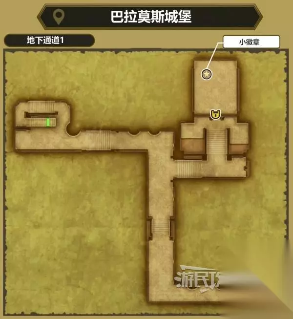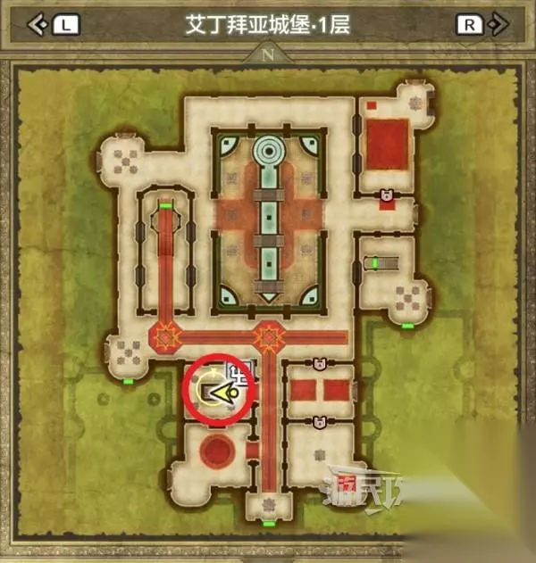 进入艾丁拜亚城堡后,在一层下图所示位置,走教堂下方的楼梯到达地下区域。