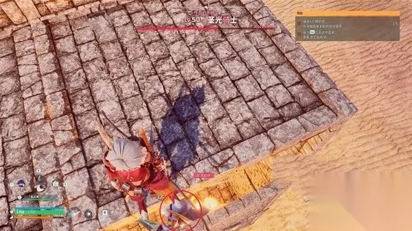 等待双骑士的血量因为火焰伤害而残血后,跳下去直接用帕鲁球抓。