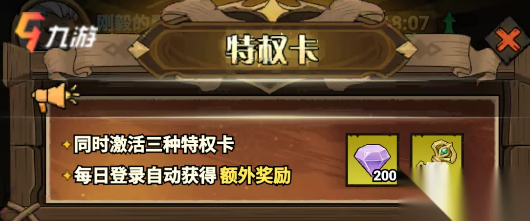 特权卡: 30元月卡特权:挂机时长上线+2,且解锁额外广告奖励。 68元超值倍率卡特权:副本双倍奖励无限次数。 98元至尊特权卡特权:免广告。 Tips:有条件的玩家建议是三张卡一起开,普通玩家30元或68元特权卡任选其一即可。