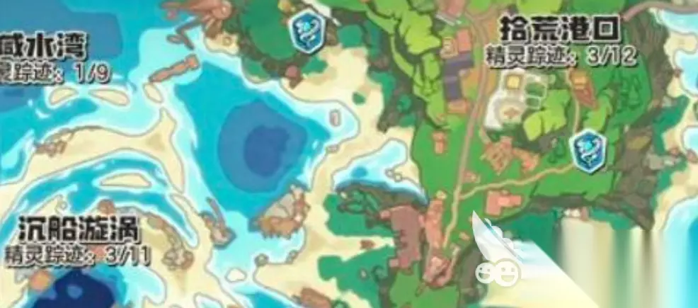 再往北走,地形开始变得平坦,植被也少了,这片区域叫聆风塔地。飞行系的野生精灵,在这里特别多,想练空中对战的话,来这里挺合适的。聆风塔地东边连着咸水湾,水域面积挺大的,水系和飞行系的精灵,在这里都有,偶尔还能碰到一些比较少见的变种精灵,运气好的话能遇到。 咸水湾下面有个地方叫沉船漩涡,地图上那块颜色看起来就很深,蓝紫色的。传送过去之后,能看到很多沉船残骸,还有一些发光的浮游生物,氛围感挺强的。不过这里的敌人等级不低,幽灵系和毒系的变异生物都有,建议至少到35级再来,最好带上净化类的道具,不然容易翻车。