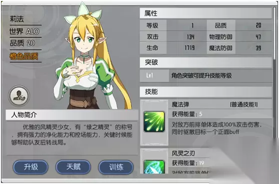作为风精灵大部队的一员,并且也是风精灵种族的高端玩家,在游戏内是橙色品质哦~由于对剑道非常熟悉,技能翎羽痛击可以熟练使用剑术痛击敌人,对敌方单体造成伤害,并有几率眩晕敌人数回合。技能魔法弹使用时攻击敌方全体,造成大量伤害,致盲并驱散有益BUFF,且有几率禁锢敌人数回合。