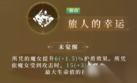 花梨的被动技能叫做“旅人的幸运”,在开场时,花梨可以选中一个队友,作为自己的“所凭魔女”,它可以直接提升基础护盾效果6%,同时在对应魔女受到攻击时,有15%的概率,直接为其增加一层护盾,护盾效果为花梨最大生命数值的8%。 花梨的特殊饰品叫做引路蝶,在释放护盾技能时,可以额外获取35%的护盾数值,该饰品的效果能够触发一次。