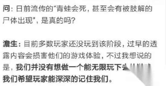 还有人不怕事大的把一些很残暴的图放上来,但是大家不要慌!这一切都是假的,游戏的官方人员并没有回答上述截图的问题,而是在官网回复过关于青蛙太久不回家的问题这个回答就是,不管多久,青蛙都会回来的。