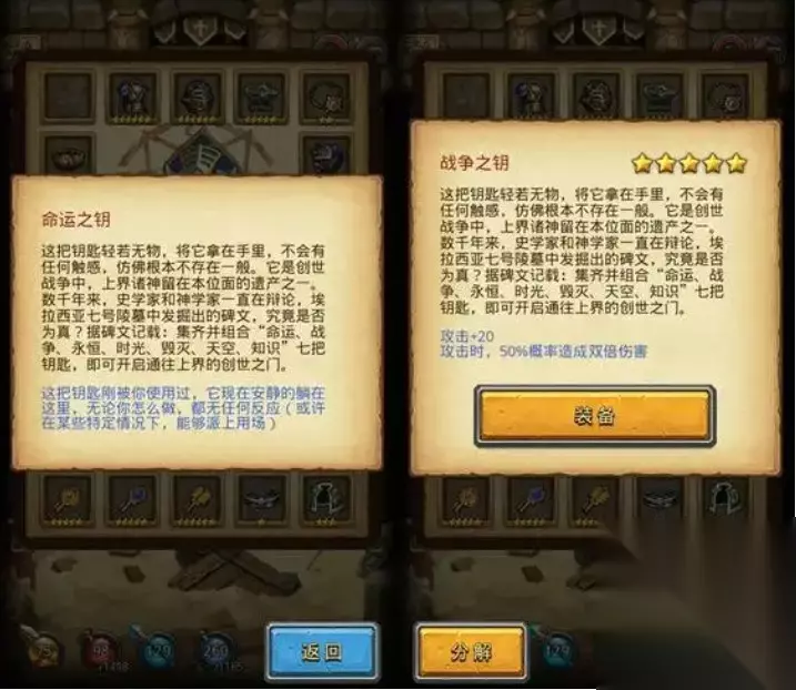 不思议迷宫创世之门的开启攻略:钥匙收集:时之术士的时光之匙:时之术士冈布奥自带时光之匙。舰长的天空之匙:舰长冈布奥自带天空之匙。巫妖王的毁灭之匙:巫妖王冈布奥献祭满后可获得毁灭之匙。战争药剂的战争之匙:使用战争药物(可通过雅典娜之泪制做)可得到战争之匙。创世神的知识钥匙:在古代竞技场65层、75层、85层角斗场有几率碰到创世神,战胜他有几率获得知识钥匙。