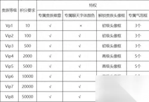 王者荣耀贵族等级怎么计算? 积分规则:1积分=1点券,1元就是10点券。 不同vip等级需要的积分是有差别的,从1到8级分别需要10、100、500、2000、5000、10000、20000和50000积分,也就是1块、10块、50块、200块、500块、1000块、2000块和5000块。