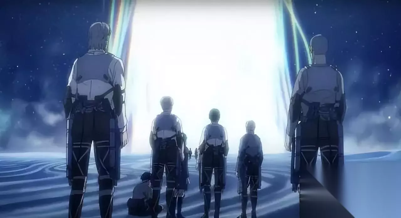 影片片头来自漫画第一话「致两千年后的你」。童年三笠在高墙内的树下唤醒艾伦,艾伦做了一个长长的梦,醒来时泪流满面,却不记得发生了什么。十年后的我们知道,那时的艾伦在时间重叠的道路中看到了从始祖尤弥尔至今的两千年里,巨人一族无法挣脱的命运羁绊,也去到了9年后排山倒海的地鸣之后,巨人之力轰然终结的那一刻。 过去与未来同时发生在艾伦的身上,他吞父弑母,如同俄狄浦斯,他旁观一切的发生和恶化,却没有能力改变,每一次介入,都是在推动命运之轮碾向命定的结局。甚至说不清楚,他究竟是无力违抗,还是有意校正一切可能的偏移,以便走向最终的毁灭。 2013年到2023年,《巨人》营造的这个长达十年的梦,大概任谁看到如今,都会像艾伦一样流下眼泪。一切必将以这样的形式结束,一切也必将通过残酷走向解脱。如今观众要做的,只是陪伴这个漫长的梦徐徐落幕。