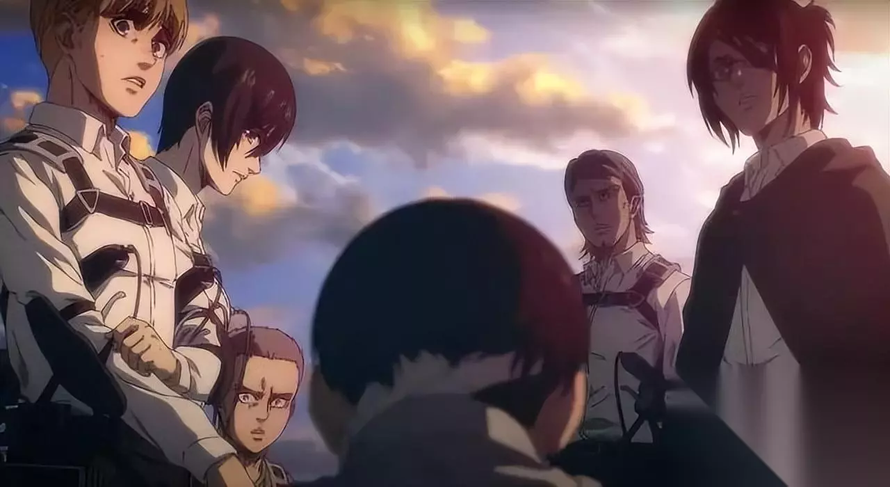 艾伦把终结一切,甚至终结艾伦自己的自由给予了他104期的伙伴。「如果他们能杀死我,大概可以终结这一切斗争,结束仇恨的历史循环,或许这世界就还存有希望。」 于是,这部《进击的巨人 最终季》的「完结篇-前篇」的后半部分,刻画的便是昔日的友人拔刀相向的时刻。事到如今,不管是拯救世界还是解放人类,一切宏大而正义的口号,都只像是在为手足相残寻找借口。 即使调查兵团的战友身心俱疲,甚至失去自我,也要前往战场,身不由己地被某种力量驱使,涉足伦常地狱,前行力量不是来源于自己,而是他人和环境不容拒绝的裹挟。