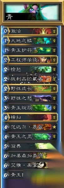 英雄技能是:每回合开始使我们的所有随从血量变成1。(但是这货没有任何的AOE) 小编用青玉德打的,只要在前中期能摸到1张大地之鳞即可(加给绿龙,来回血)