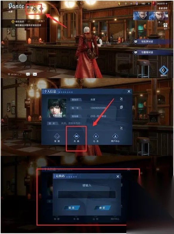 很多玩家获得《鬼泣:巅峰之战》兑换码后不清楚使用方法,本文详细介绍鬼泣巅峰之战兑换码的使用步骤:先进入游戏主界面点击指定位置,进入个人信息界面后点击兑换按钮,最后输入兑换码即可完成兑换。