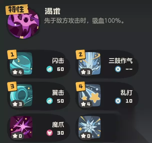 这个精灵的特性是渴求,如果我方先于敌人进行攻击,那么将会额外的获取到100%的吸血。加上叮叮恶魔本身的攻击就很高,所以一旦触发的话基本上一次就可以回复很多的血量,有的时候将会有逆转战局的效果。