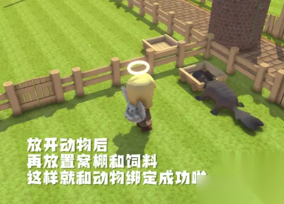 6、放开动物后再放置窝棚和饲料,这样就和动物绑定成功了