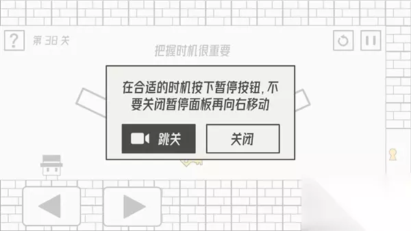 第38关攻略:在合适的时机按下暂停按钮,不要关闭暂停面板在向右移动