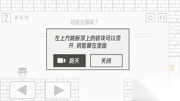 第16关攻略:左上方跳板顶上的砖块可以顶开,钥匙藏在里面